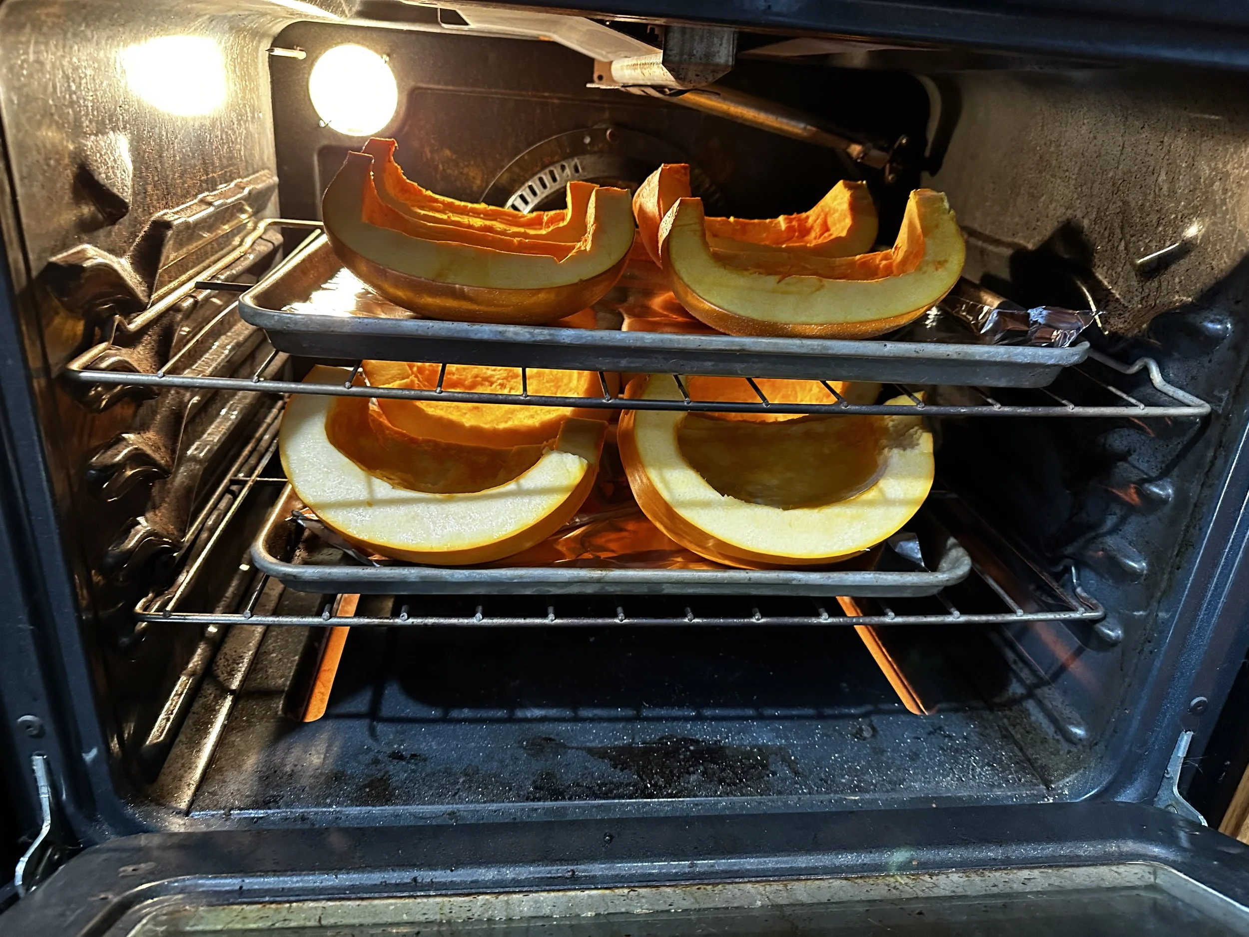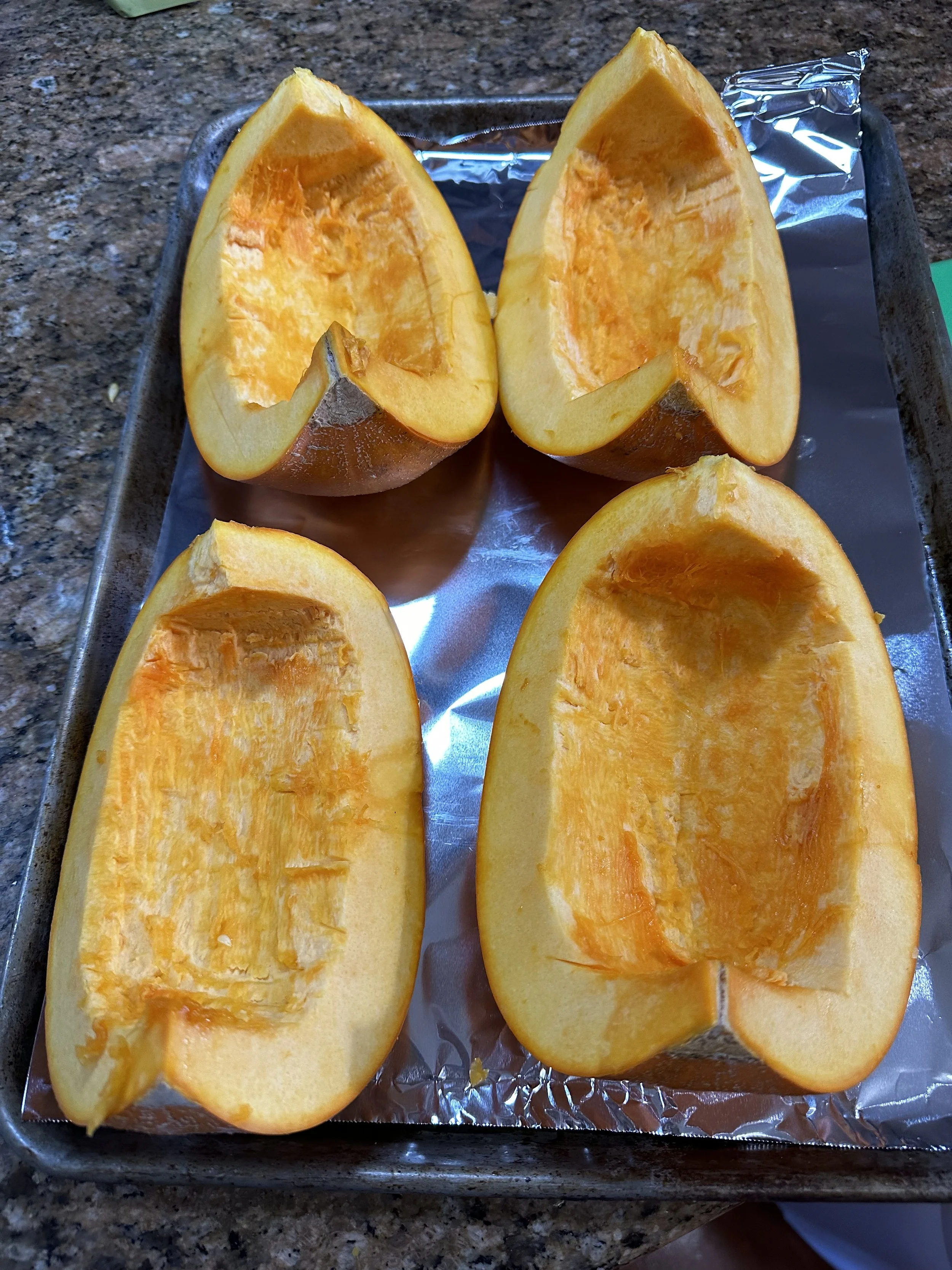 1) Cut pumpkins in half